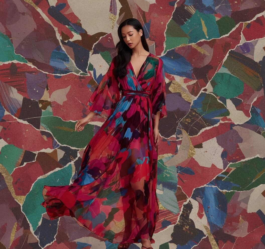 Para 2026, o abstrato se consolida como uma das principais tendências criativas da moda, trazendo movimentos em formas livres, texturas orgânicas e composições não lineares.