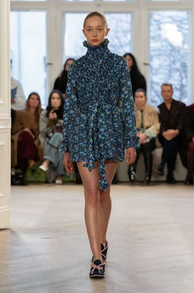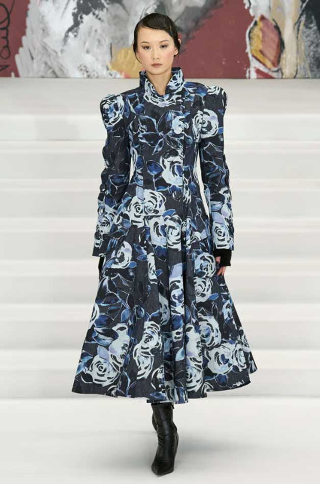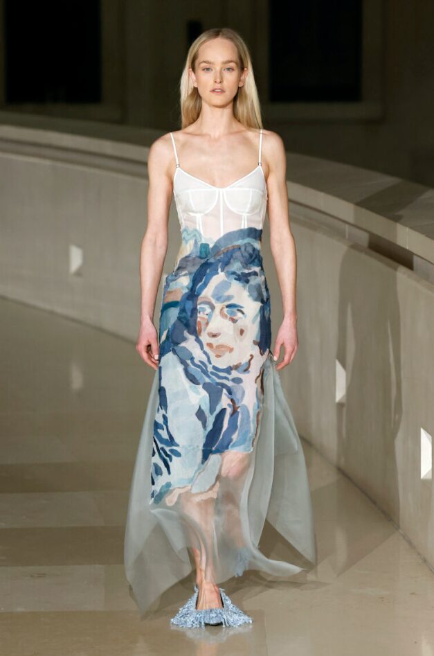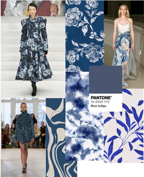 Nas passarelas de 2025, o azul índigo apareceu em diversas versões, de florais sofisticados a ilustrações figurativas marcantes. A cor traz um ar moderno sem perder o charme clássico. Versátil, se adapta a diferentes estilos com muita elegância.